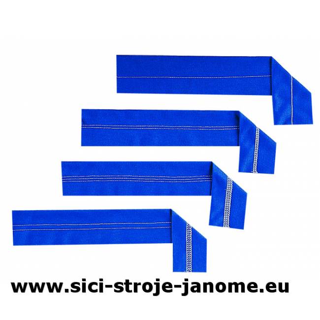 šířka krycího lemu je 3 nebo 6 mm podle umístění jehel. Délka stehu lze plynule regulovat od 1 do 4 mm.